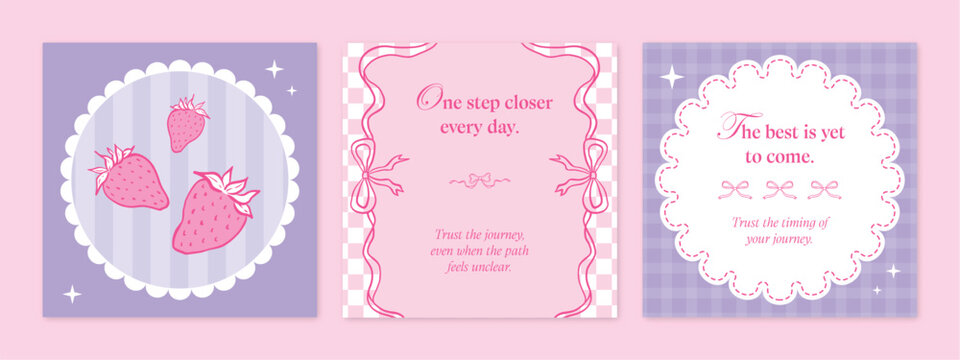 Set of 3 Groovy poster designs with hand written lettering positive quotes. Wavy rainbow retro colors background. Trendy 60s 70s poster design. Vintage typography.