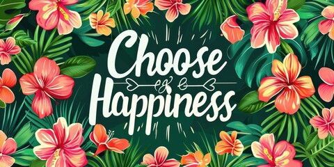 A vibrant design featuring tropical flowers and the phrase "Choose Happiness."
