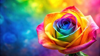 A vibrant rainbow rose heart, romantically arranged, captures love's colorful beauty in artistic floral photography.