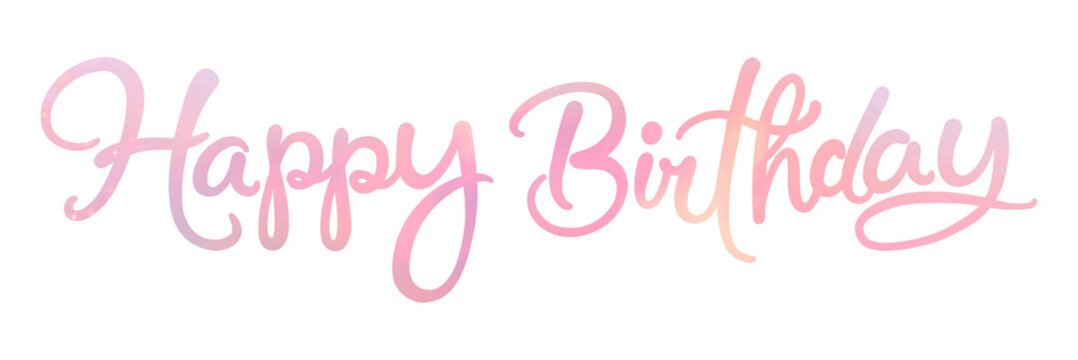 PNG happy birthday sticker, pastel pink calligraphy text in transparent background