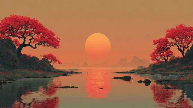 Tranquil Ink mountains. Cold river culture. Generate Ai