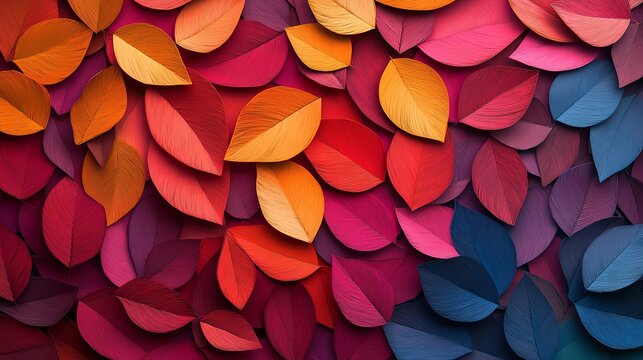 Multicolored paper cut leaf pattern with layered autumn tones, creating a rich, natureinspired design, paper cut leaves, colorful botanical pattern