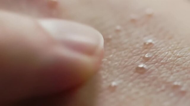 Closeup of a persons finger gently touching skin covered in small raised bumps possibly indicating a skin condition allergic reaction or insect bites highlighting the texture and appearance of the af.
