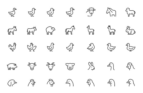 Set of pet shop icons, dog, cat, puppy, animals. Pet, vet, pet shop, types of pets - minimal thin line web icon set. Editable stroke outline icon.
