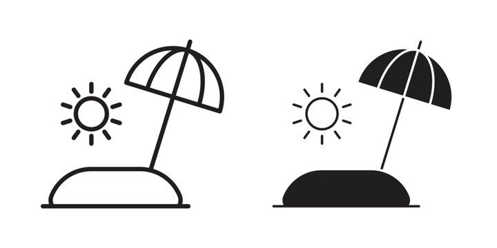 Coastal Panorama Icons. Outline icon set of coastal panoramas: lighthouse, fishing boats, port cranes, sandy