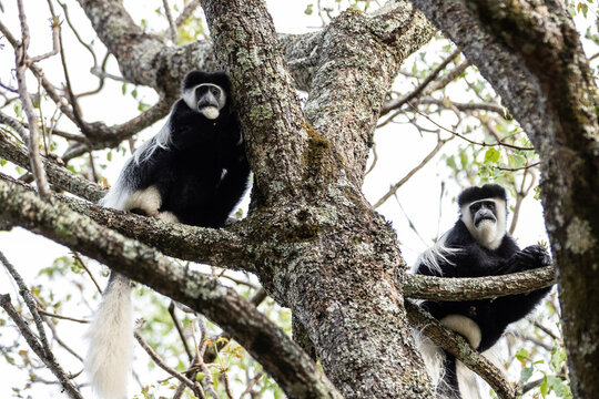 3 fröhliche Affen mit Partyhüten und Sonnenbrillen in Partystimmung. Generative Ai.