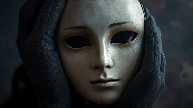 Fake emotion, character roles, intricate interplay of masks, moods, psychological defense mechanisms performed role-playing, concealing false visage for defense, theater Psychology psychoanalysis.