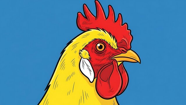 Vibrant rooster portrait with bold colors and dynamic lines, perfect for farm themes, educational materials, or adding a touch of country charm to designs