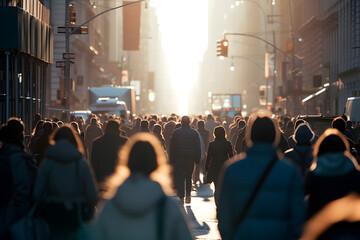 Crowd of people walking on New York city street. Generative Ai