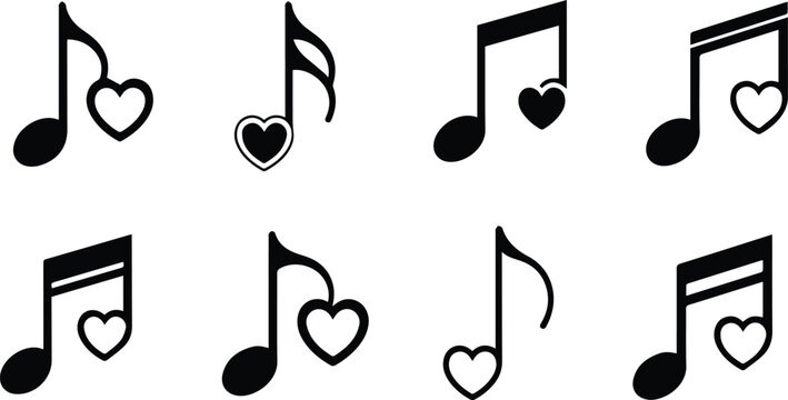 Vector art of musical notes with heart shapes, creating a harmonious blend of love and melody, perfect for expressing affection through music and celebrating romantic tunes