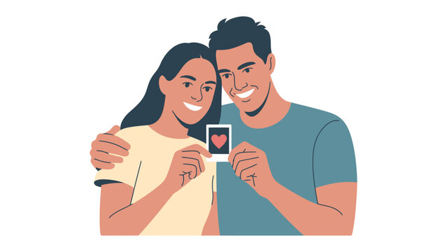 Love's First Glimpse: A tender moment captured as a couple shares a photograph, a symbol of their growing affection and shared journey.