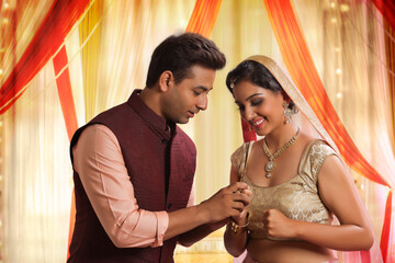 Cheerful man adjusting bow tie celebrating national bow tie day