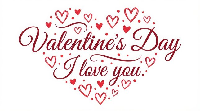 Romantic heart illustration, love message design, Valentine’s Day graphic, red and pink hearts, white background, affectionate theme