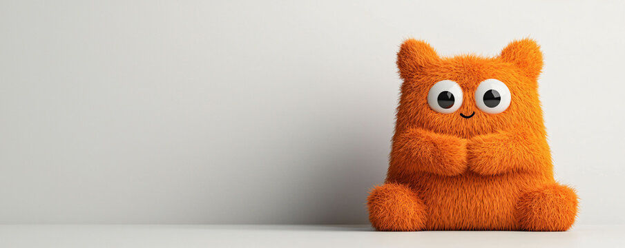 This small furry monster is hugging itself, radiating warmth and affection. Its vibrant orange color and big eyes create playful and inviting atmosphere
