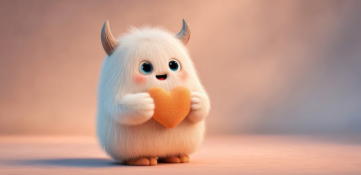 Cute Fluffy Monster with Heart for Valentine’s Day Celebration