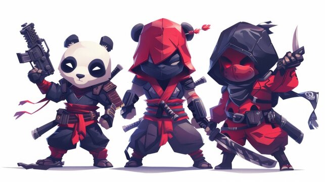 illustraction of techwear chibi panda ninjas robot mecha future JAPANESE VIBE detailed design for streetwaer and urban style t-shirts design