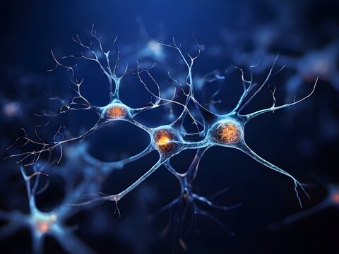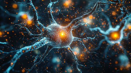 Intricate human nerve endings with glowing synapses in detailed medical illustration