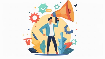 Man with Megaphone: Marketing and Communication Concept