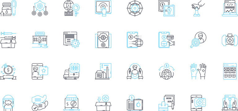 Internet sales linear icons set. E-commerce, Online auctions, Webstore, Digital marketing, Affiliate, Dropshipping, Marketplace line vector and concept signs. E-tail,Cybercommerce,Online shopping
