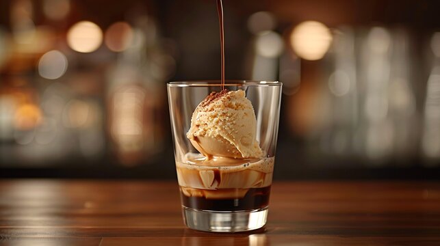 affogato dessert with rich espresso drizzle on vanilla ice cream