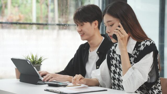 Friends of Asian MBA student researching data of thesis project, education online college courses, accredited degree programs, english chinese languages classroom, affordable regionally accredited
