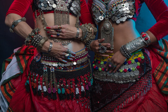 Belly dancers, indian dancers and flamenco dancers close-up cropped photo