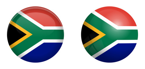 South Africa flag under 3d dome button and on glossy sphere / ball.