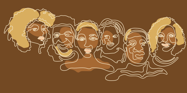 Head silhouettes of a black woman and a man. Beautiful profiles of African American people.