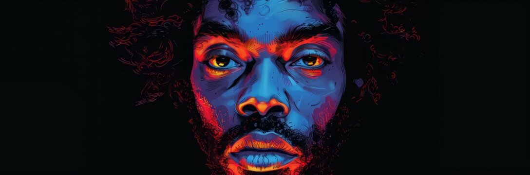 colorful Abstract portraits of a beautiful African american man with afro in pop art illustration, dark skinned black man abstract art. Black History Month with copy space for text. Generative ai