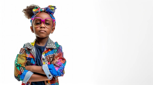 Cute and confident afroamerican  girl on white background - childrens day banner