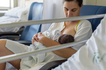 Overweight lady unhappy with her mirror reflection, afterbirth stage depression