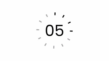 15 second countdown timer animation from 0 to 15 second with alpha channel, fifteen second countdown timer on transparent background.