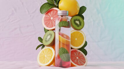 Refreshing Citrus Infused Water with Mint and Kiwi Fruits, ai-generated