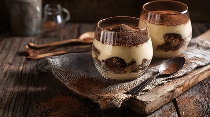 Delicious Creamy Layered Tiramisu Dessert in Glass: Traditional Italian Cuisine with Cocoa & Coffee Flavors | Homemade Gourmet Recipe for Decadent Sweet Dining Delight