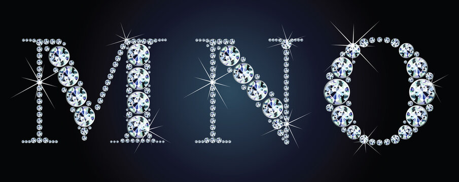 Diamond alphabet letters. Stunning beautiful MNO jewelry set in gems and silver. Vector eps10 illustration.