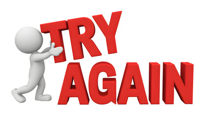Try again motivation success inspiration determination perseverance effort achievement retry concept on transparent background