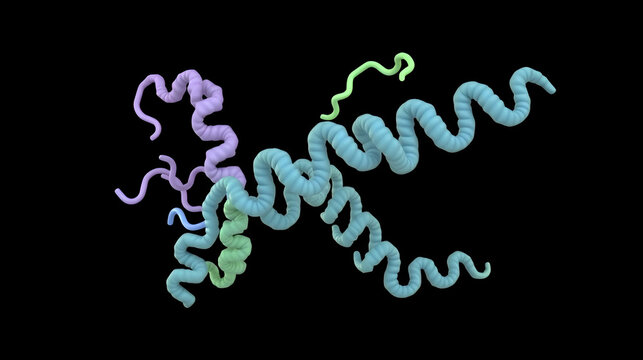 Crystal structure of alpha-galactosidase or agalsidase enzyme that causes Fabry disease. Ribbons diagram with differently colored protein chains. 3d illustration