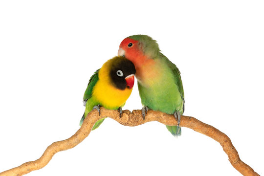 Pair of Masked Lovebird natural coloring on the white background