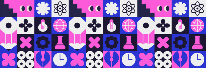 Geometry education mosaic for school books with flat child-friendly icons.