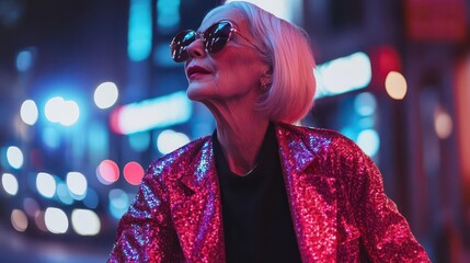 A striking and energetic image of an older individual balancing on a skateboard, capturing the essence of agility, movement, and the defiance of age stereotypes in sports.