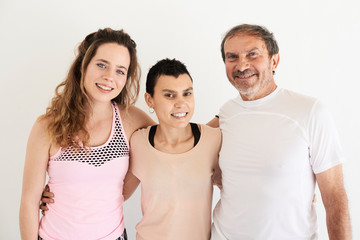 Cheerful volunteers embracing for community service celebration