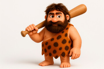 Caveman Cartoon Character Ready To Writing On Rock Blank Sign. Hand Drawn Illustration Isolated On Transparent Background