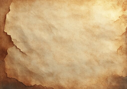 torn aged parchment paper background with warm brown stains, textured vintage surface and nostalgic weathered feel