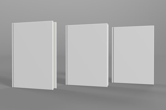 Realistic 3d book mockup illustration with 3 hard covers. Book mockup standing on isolated gray background with shadow. 3 hardcover books.