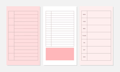 Simple style memo, notepad template planner, note frame illustration set. Ready to print to do list daily planner.