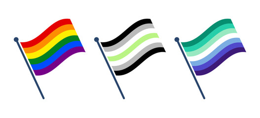 Set of wavy LGBTQIA community pride flag vector illustration.