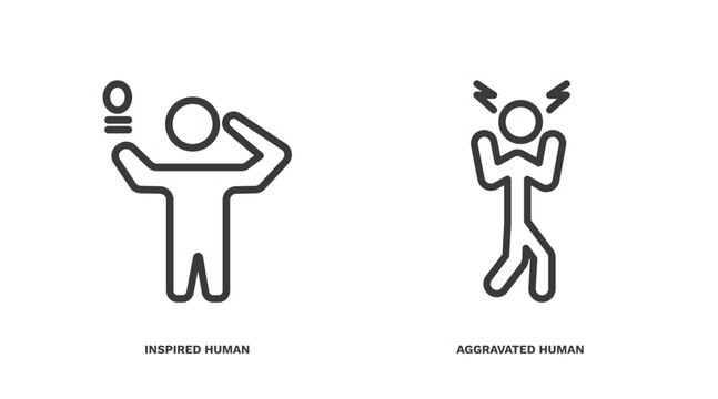 fully editable outline icon collection from feelings concept. thin line icons set such as inspired human, rough human, aggravated human, amazing confused