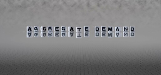aggregate demand word or concept represented by black and white letter cubes on a grey horizon background stretching to infinity