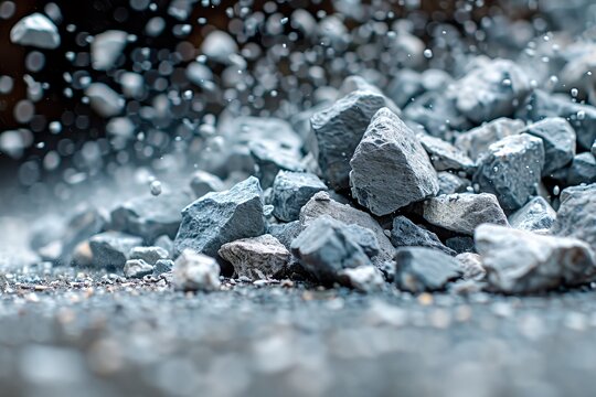 Jaw crusher reducing large stones to aggregate in a manufacturing facility