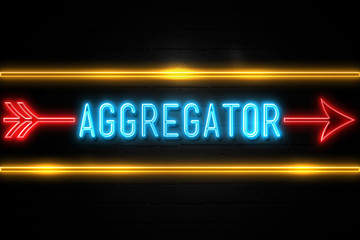 Aggregator  - fluorescent Neon Sign on brickwall Front view